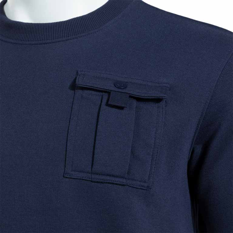 Include rebranturi la mansete si in partea de jos, ceea ce asigura o potrivire confortabila si favorizeaza mentinerea formei hainei. Are un buzunar frontal cu inchidere cu nasturi, care combina functionalitatea cu un touch distinctiv in design.
