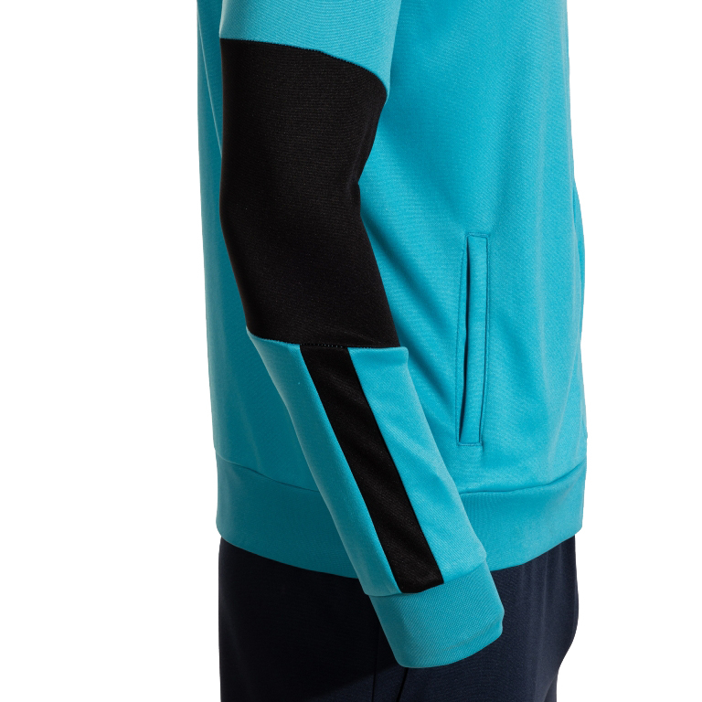 Trening pentru barbati format dintr-o jacheta si o pereche de pantaloni, proiectat pentru a oferi confort si functionalitate in orice activitate sportiva sau de timp liber. Jacheta are un fermoar complet si un protector pentru barbie, asigurand confort si protectie in timpul utilizarii. Gulerul inalt ofera mai multa caldura, in timp ce banda elastica de la maneci si talie permite un ajust optim. De asemenea, are buzunare fara fermoar pentru mai mult confort. Pantalonul, proiectat cu un sistem de dublu ajust care include o talie elastica si un siret plat, ofera o fixare perfecta. Buzunarele cu fermoar asigura siguranta pentru a depozita obiecte mici, in timp ce deschiderile inferioare cu fermoar faciliteaza ajustarea si permit mai multa libertate de miscare.