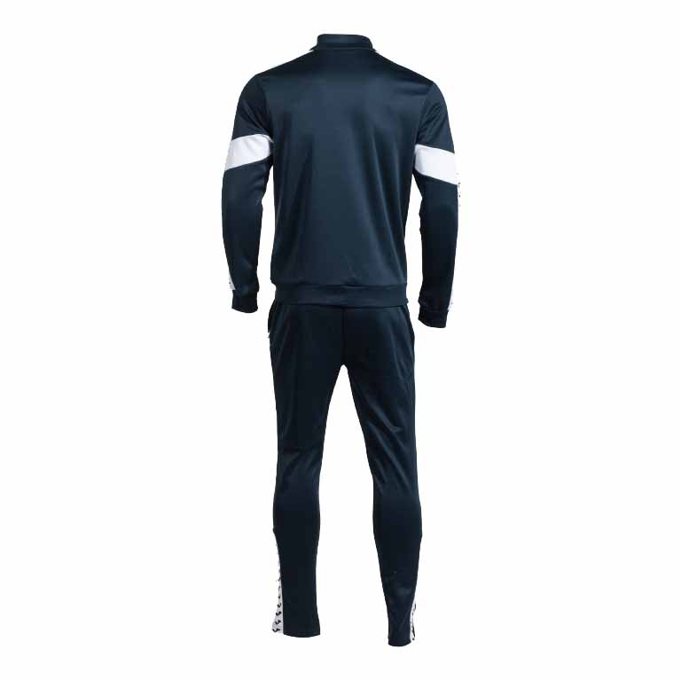 Pantalonul lung include un sistem de dubla reglare cu talie elastica si sireturi interioare, garantand o potrivire adaptabila. Deschiderile inferioare cu fermoar faciliteaza adaptabilitatea si ventilarea, iar buzunarele cu fermoar asigura stocarea obiectelor personale. In plus, banda tesuta de pe lateralele picioarelor intareste designul sportiv al setului.