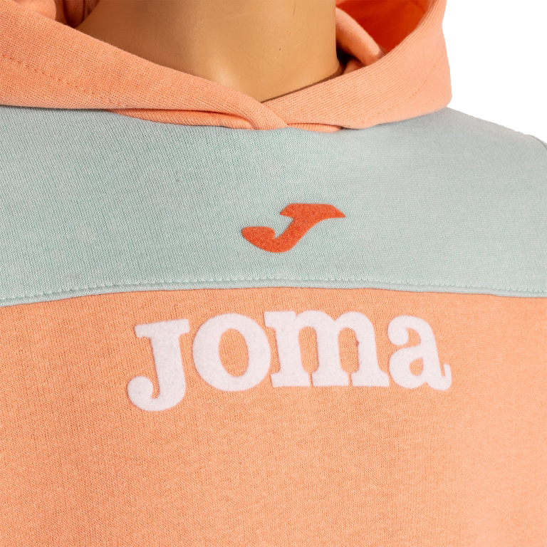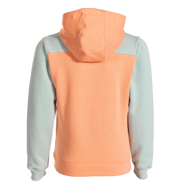 Are o glugă încrucișată cu covertape în interiorul gâtului pentru a preveni posibilele iritații. La mâneci, se ajustează cu rib. Este echipată cu o buzunar mare tip marsupiu.