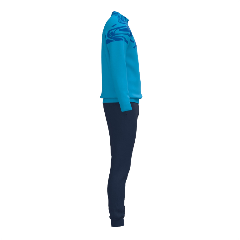 Puloverul are un fermoar complet și un protector pentru bărbie, guler înalt și ajustare cu rib la mâneci și talie. De asemenea, are două buzunare laterale fără fermoar, în care poți să-ți depozitezi obiecte mici. Pe de altă parte, pantalonii au o talie elastică ajustabilă cu șnur, rib în partea de jos și alte două buzunare fără fermoar.