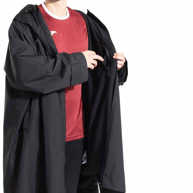 A fost proiectat cu fermoar cu dubla directie, gluga reglabila cu stoppers si doua buzunare frontale cu fermoar. De asemenea, este prevazut cu alte doua buzunare interioare, tot cu fermoar.