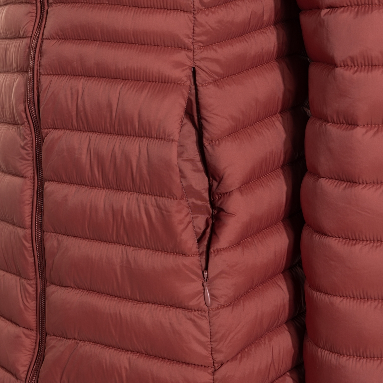 Geaca este fabricată dintr-un material căptușit foarte ușor, care menține temperatura corpului constantă și oferă confort sportivei.