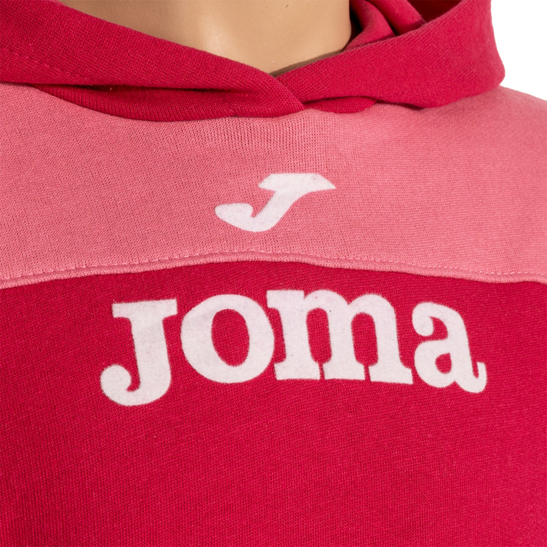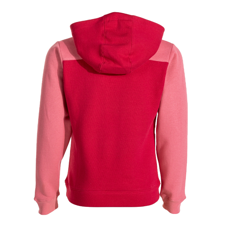 Are o glugă încrucișată cu covertape în interiorul gâtului pentru a preveni posibilele iritații. La mâneci, se ajustează cu rib. Este echipată cu o buzunar mare tip marsupiu.