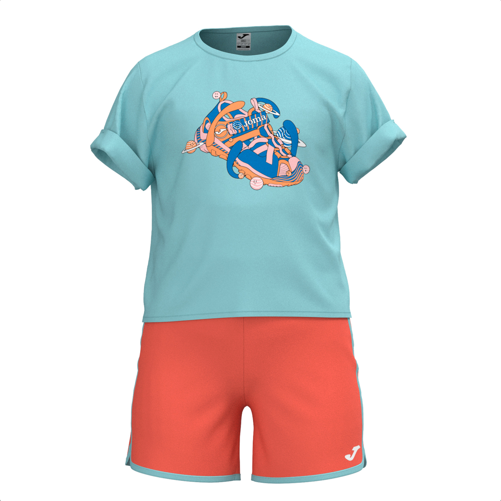 Perfect pentru utilizarea zilnică și pentru orice activitate. Acest set de vară este format dintr-un tricou cu mânecă scurtă și decolteu cu nervuri. Prin urmare, se va realiza o ajustare confortabilă, iar cel mic va fi mai ușor să îl îmbraci. Prezintă un imprimeu distractiv, personalizat cu skateboard. De asemenea, vine cu pantaloni scurți cu o bandă elastică pentru a oferi o mai bună potrivire și ajustare.