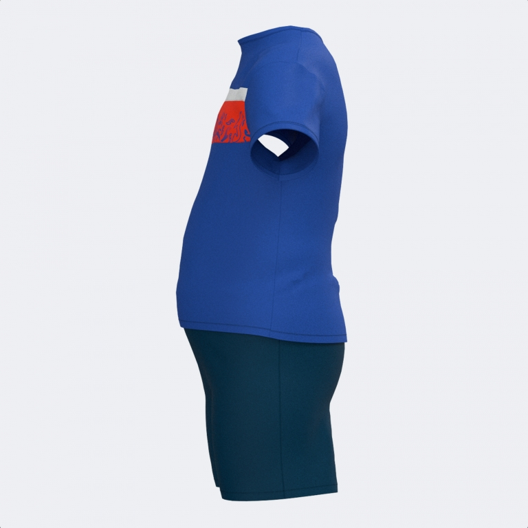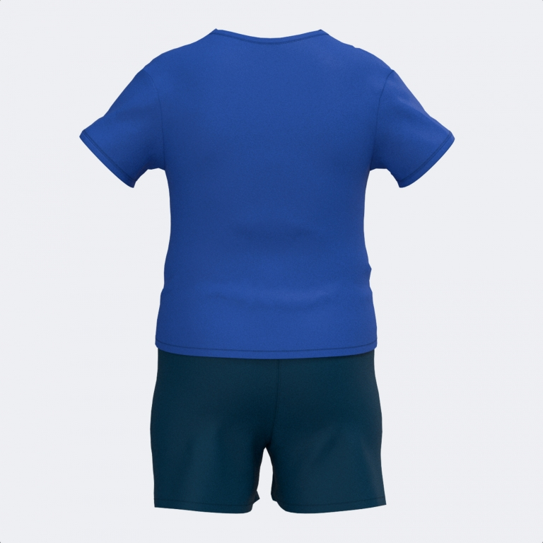 Acest set de vară este format dintr-un tricou cu mâneci scurte, cu gât rotund. Se remarcă prin imprimarea distractivă personalizată cu sigle Joma amplasate pe o piesă în culoare contrastantă. În plus, vine cu pantaloni scurți cu talie elastică și șnur reglabil pentru a oferi un suport mai mare. Pe laterale, are doua buzunare mari fara inchidere cu fermoar.