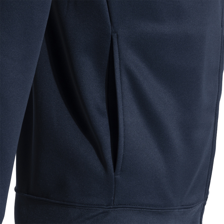 Puloverul are închidere cu fermoar complet, guler înalt și ajustare cu manșete și talie din rib. De asemenea, are două buzunare laterale fără fermoar, în care pot fi depozitate obiecte mici. Design cu tăieturi contrastante la culoare. Pe de altă parte, pantalonii au o talie elastică cu șnur interior plat și alte două buzunare laterale fără fermoar.