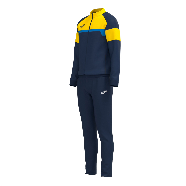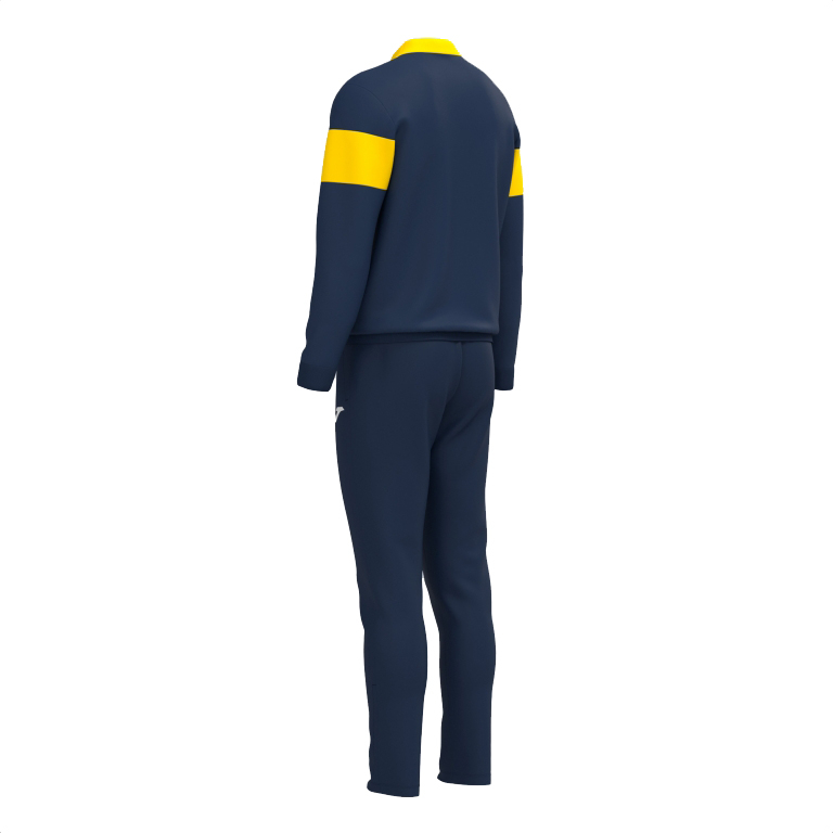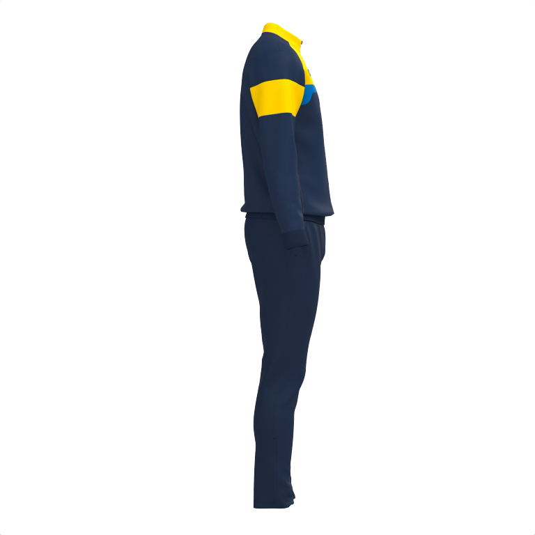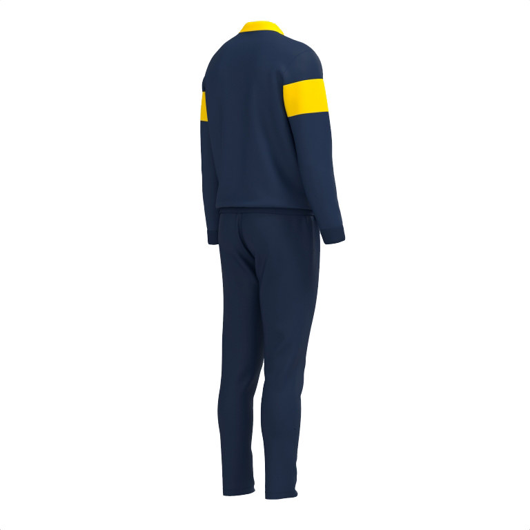Puloverul are închidere cu fermoar complet, guler înalt și ajustare cu manșete și talie din rib. De asemenea, are două buzunare laterale fără fermoar, în care pot fi depozitate obiecte mici. Design cu tăieturi contrastante la culoare. Pe de altă parte, pantalonii au o talie elastică cu șnur interior plat și alte două buzunare laterale fără fermoar.