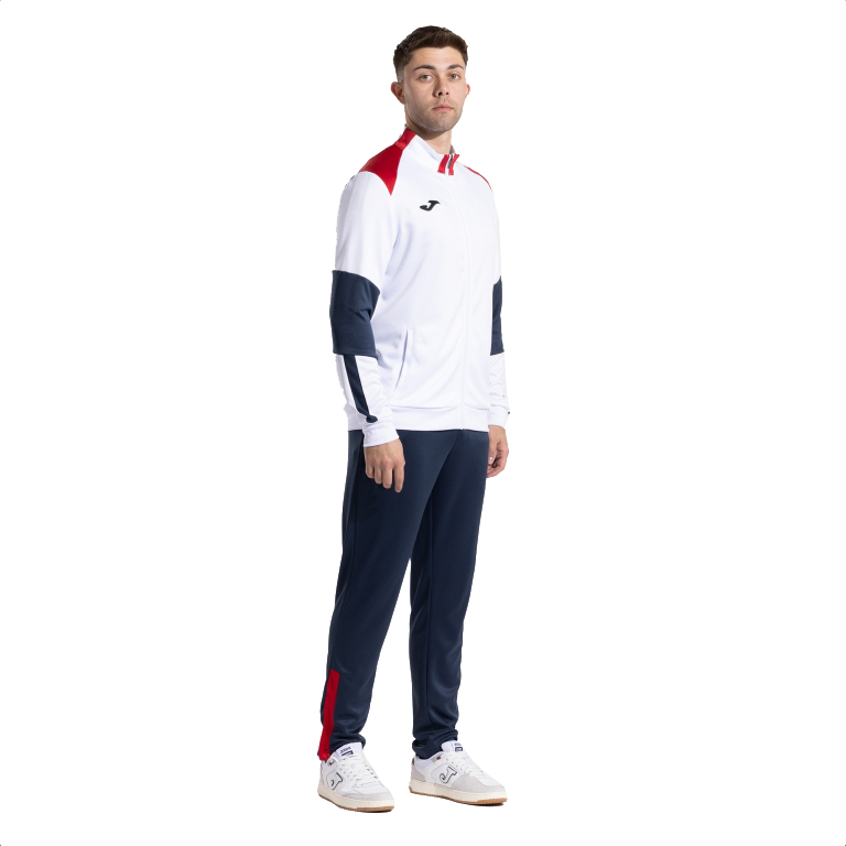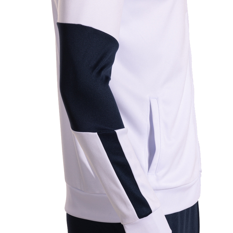 Trening pentru barbati format dintr-o jacheta si o pereche de pantaloni, proiectat pentru a oferi confort si functionalitate in orice activitate sportiva sau de timp liber. Jacheta are un fermoar complet si un protector pentru barbie, asigurand confort si protectie in timpul utilizarii. Gulerul inalt ofera mai multa caldura, in timp ce banda elastica de la maneci si talie permite un ajust optim. De asemenea, are buzunare fara fermoar pentru mai mult confort. Pantalonul, proiectat cu un sistem de dublu ajust care include o talie elastica si un siret plat, ofera o fixare perfecta. Buzunarele cu fermoar asigura siguranta pentru a depozita obiecte mici, in timp ce deschiderile inferioare cu fermoar faciliteaza ajustarea si permit mai multa libertate de miscare.